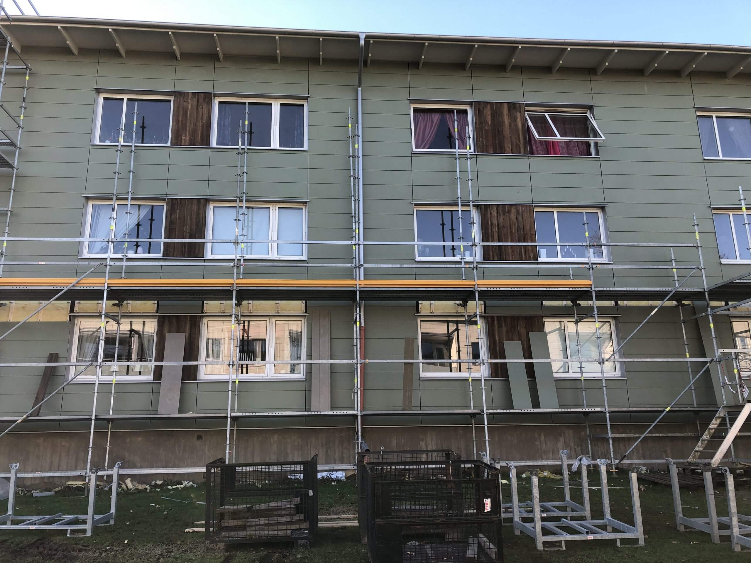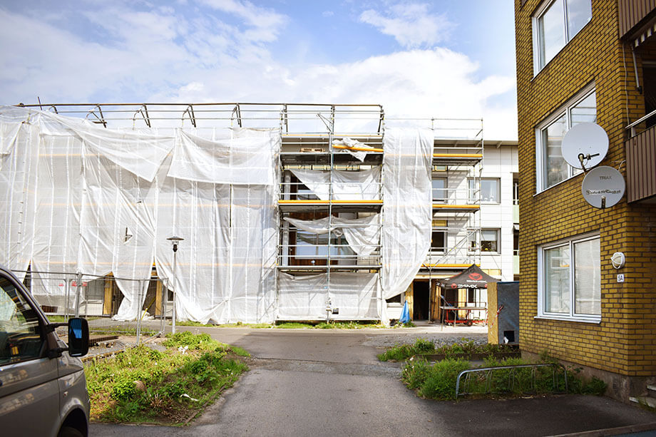 Omfattning: Totalentreprenad för Kvarteret Snickaren åt Marks Bostads AB (2018–2020). Projektet omfattade utvändig och invändig renovering av ytskikt med fokus på ett fräscht och hållbart resultat, samt ventilationsarbeten för bättre inomhusklimat. Arbetet genomfördes etappvis med tydlig planering och samordning för att minimera störningar för boende och verksamhet.